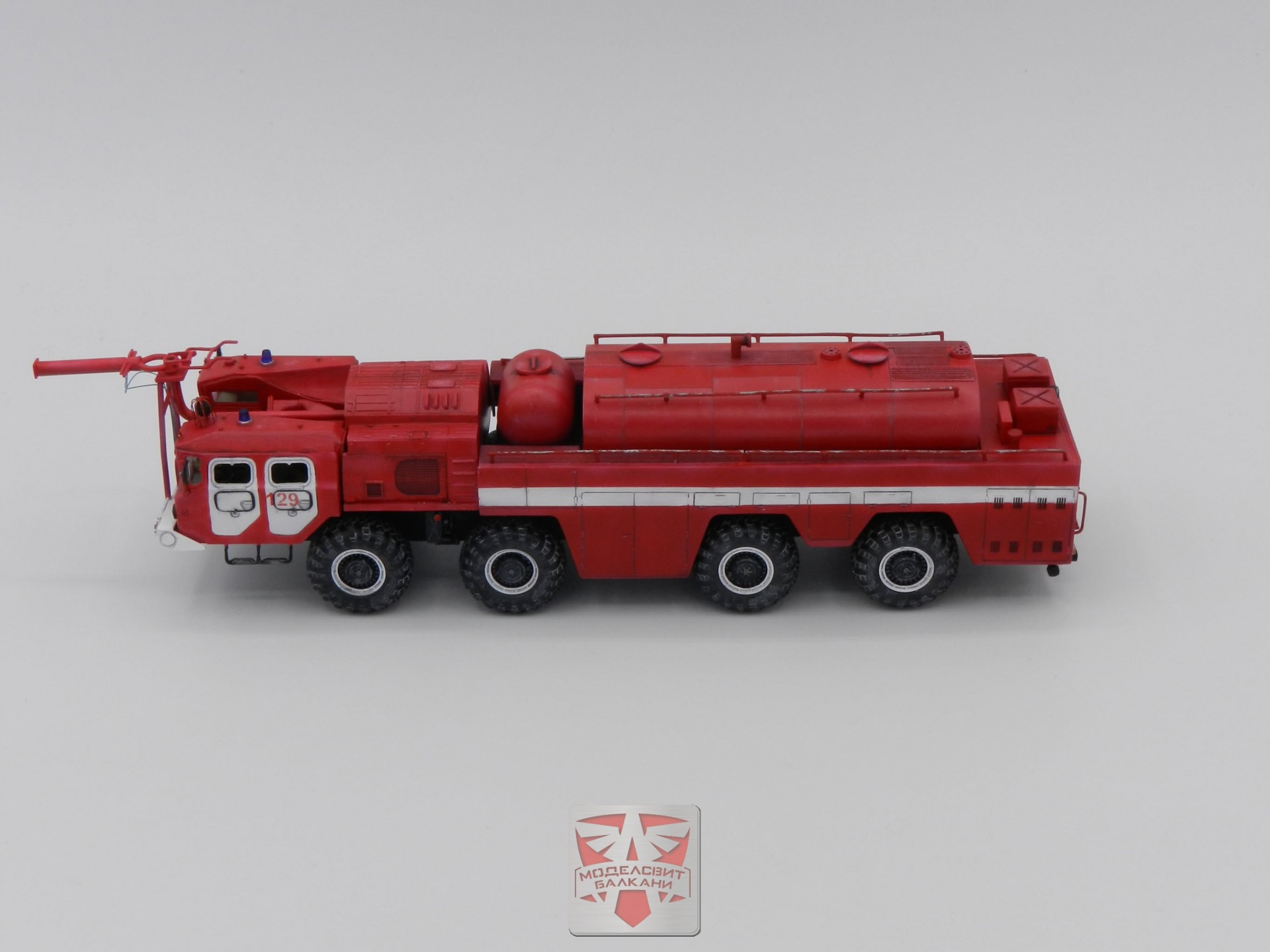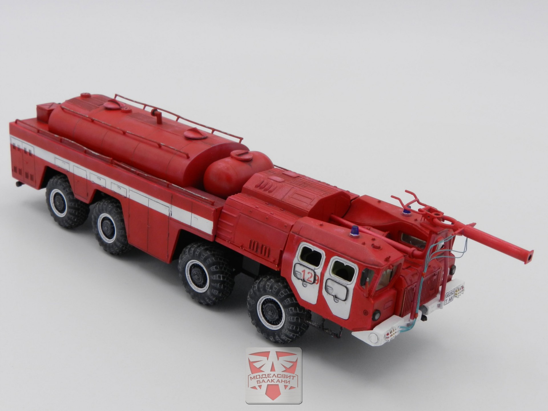 The AA-70 has been spread thought the USSR as a main ARFF vehicle since mid 70’s.The truck was based on the famous MAZ-7310, used as mobile platforms of “Scud” missiles. A&A Models kit consists of 205 parts, having decals for 2 different marking schemes, additional adhesive masks and tires set, made from black plastic.